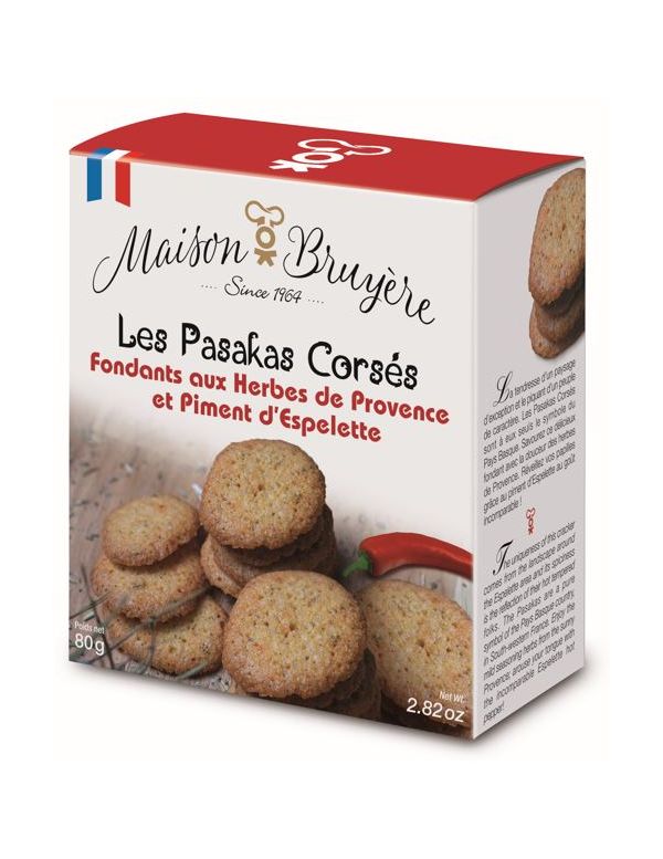 Pasakas Corsés par Maison Bruyère en boîte de 80 g - Confectionnés en France - Conservation longue durée - Conditionnés sous atmosphère protectrice.