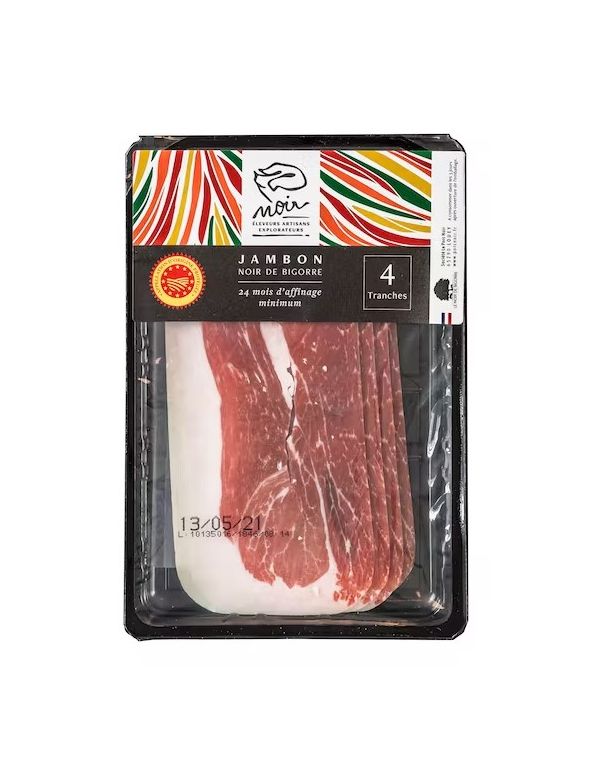 Jambon de porc noir de Bigorre AOP en barquette de 4 tranches extra fines
