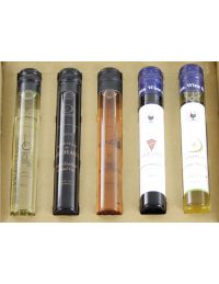 Présentés de façon originale dans des flacons en verre de 100 ml, soit l'équivalent d'un verre de vin, ces 5 grands vins français constituent la sélection Jemangefrancais.com, approuvée par un œnologue.