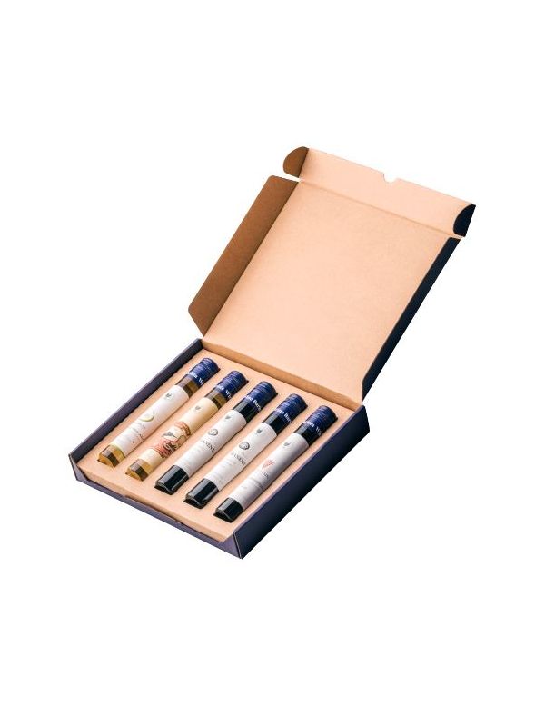 Coffret initiation 5 vins à offrir - Coffret cadeaux 26 x 29 cm contenant 5 flacons de vin de 100 ml chacun.
