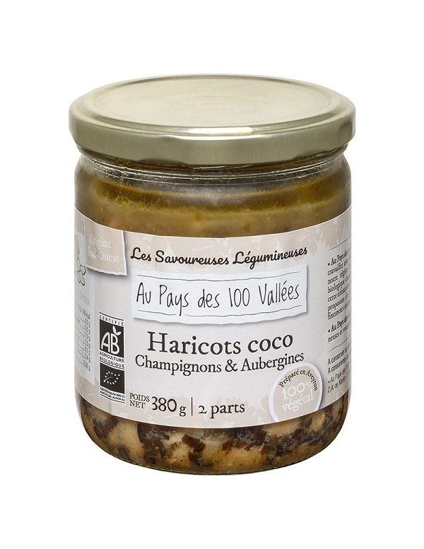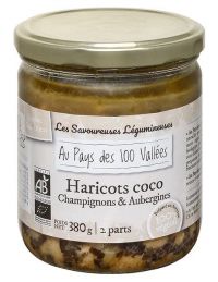 Haricots coco champignons et aubergines Bio en conserve - 2 parts