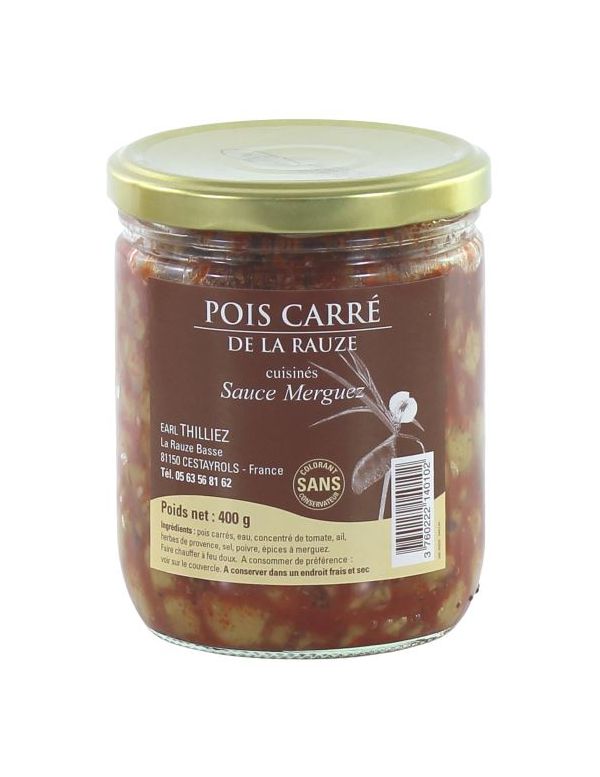 Vous ne saviez pas comment cuisiner vos pois carrés tout en relevant ces derniers d'une sauce piquante et bien ne cherchez plus nous l'avons trouvé pour vous. Effectivement vous allez pouvoir déguster ces délicieux pois carrés sauce merguez qui ont été cuisinés pour vous sans colorant ni conservateur avec des pois carrés cultivés et produits en France.