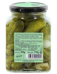 Pot de cornichons d'un poids net total de 555 g et d'un poids net égoutté de 270 g - Origine France Garantie