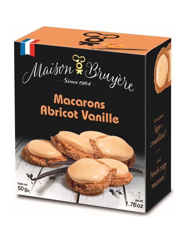 C'est un biscuit artisanal à la texture légère qui laisse en premier plan l'explosion de saveurs issue du mariage entre la meringue au parfum d'abricot et la fine note de vanille Bourbon.