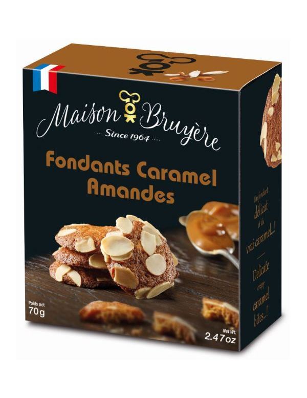 Fondants au caramel et aux amandes en boîte de 70 g - Biscuits fabriqués en France de conservation longue durée