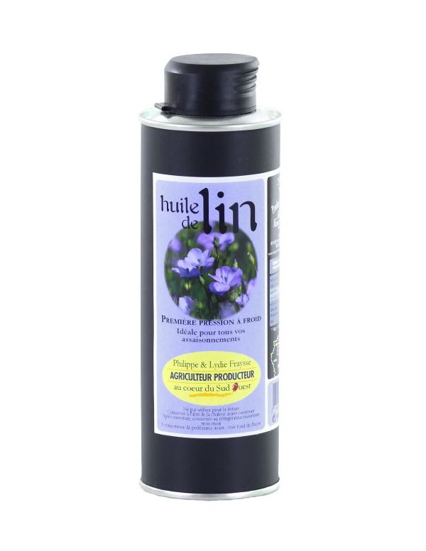 L'huile de lin est une des huiles les plus riches en oméga 3 que la nature nous propose. Cette huile de lin est extraite en première pression à froid de façon à ne pas altérer les qualités organoleptiques de cette huile, il n'y a donc aucune opération de raffinage, aucun additif et aucune altération par la chaleur. De plus les graines de lin proviennent de la région Occitanie et plus précisément du Tarn, l'agriculteur est le producteur ce qui nous garantit une traçabilité infaillible.
