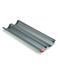 Conçue en acier inoxydable, gage de robustesse et de durabilité, le revêtement perforé de cette plaque à baguettes de qualité professionnelle est spécialement conçu pour une circulation optimale de l'air chaud lors de la cuisson et peut résister à une chaleur allant jusqu'à 250° voire 80 ° C. Le revêtement de la plaque à baguettes est, qui plus est, antiadhésif pour un démoulage facile sans cassure.