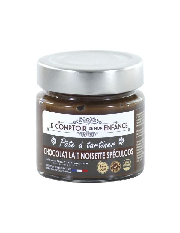Amateurs de spéculoos, ce biscuit traditionnel du Nord de la France ou de Belgique, nous avons le plaisir de vous proposer ici une pâte à tartiner au Spéculoos. Un Tartinable artisanal lait et noisette (45 %) sans cacao où vous apprécierez retrouver un délicieux croquant spéculoos. Les biscuits sont concassés parfois grossièrement pour donner un véritable et savoureux effet crunchy en bouche !