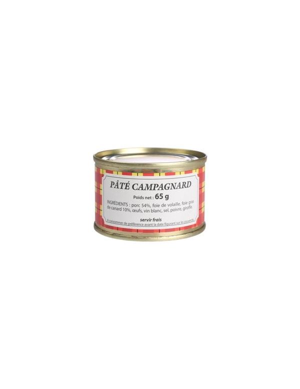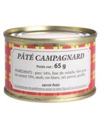 Pâté de campagne au foie gras proposé en conserve de 65 g (1/2 personnes) ou 200 g (5/6 personnes) - Conservation longue durée.