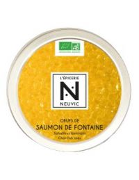 Retrouvez ici un met d'exception que s'arrachent les plus fins connaisseurs et les plus grands restaurateurs ! Moins connus que les œufs d'esturgeon, voici les œufs de saumon de fontaine, largement identifiables à leur belle couleur jaune pâle. Plus fermes que le caviar, les œufs de saumon de fontaine proposent en bouche des notes iodées légèrement fumées.