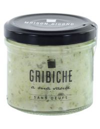 Sauce Gribiche végétarienne sans œufs proposée dans un pot en verre - Poids net 110 g