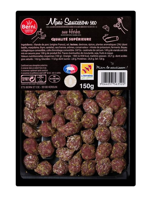 Boîte de 150 g soit environ 35 petits saucissons aux herbes