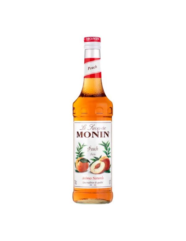 Un sirop à la pêche bien frais, quoi de mieux pour apprécier une belle journée estivale ? Quand tout le parfum intense de la pêche mûre cueillie au milieu des vergers est restitué dans ce sirop de pêche Monin, on comprend pourquoi il s'agit d'un excellent sirop pour aromatiser vos boissons et cocktails.