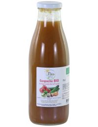Gaspacho Bio et 100 % naturel proposé en bouteille de verre de 75 cl - Conservation longue durée - À conserver au frais après ouverture et à consommer rapidement.