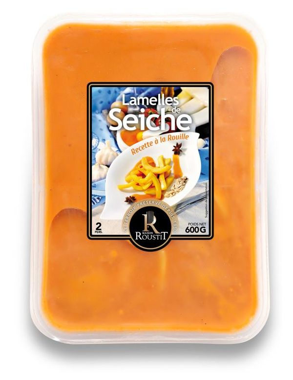 Nous vous proposons de délicieuses lamelles de seiches dans leur sauce à la rouille en plat cuisiné pour un repas rapide des plus savoureux !