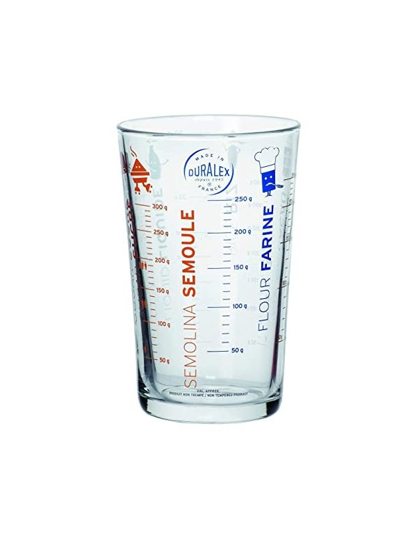 Ce verre doseur en verre fabriqué en France vous permettra de mesurer les quantités de divers ingrédients :